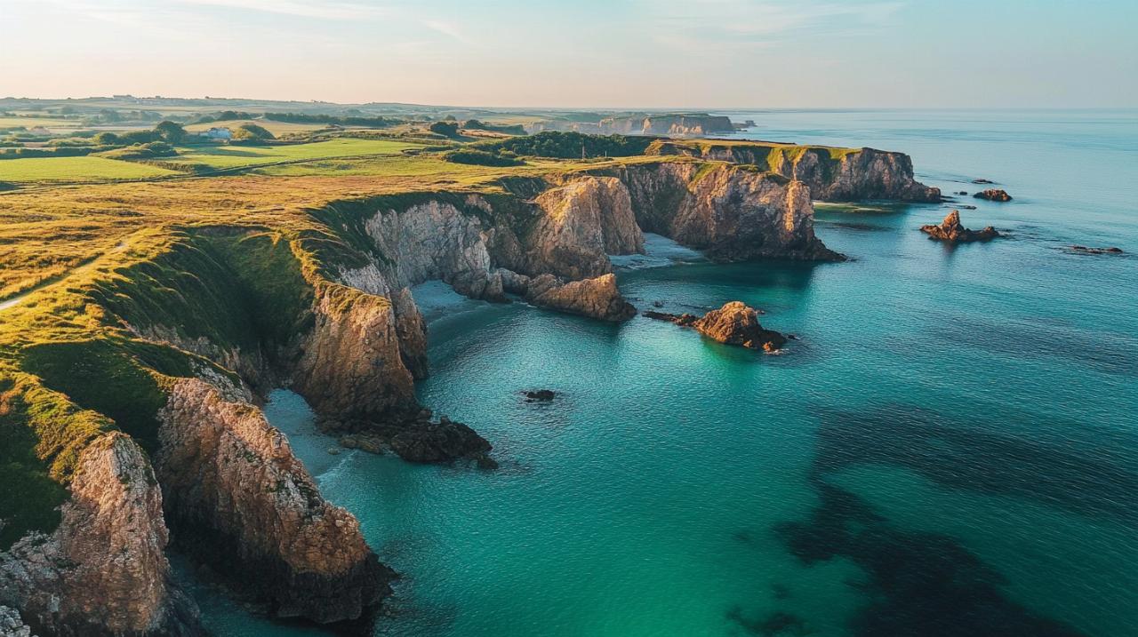 La Costa Esmeralda es sin duda uno de los tramos litorales más espectaculares de toda Francia, y observarla desde un helicóptero es una experiencia que supera cualquier expectativa. Esta franja costera, que se extiende desde Cancale hasta el Cabo Fréhel, está salpicada de playas de arena blanca, acantilados escarpados, pequeñas calas escondidas y aguas de un color verde esmeralda que justifican plenamente su nombre. Un vuelo sobre esta zona permite apreciar la magnitud de la costa bretona, identificar faros emblemáticos como el de Cap Fréhel, y descubrir rincones inaccesibles por tierra. El contraste entre el azul intenso del mar, el verde de los acantilados y el dorado de las playas crea un espectáculo visual que deja sin aliento. Este tipo de recorrido es especialmente popular durante los meses de primavera y verano, cuando la luz del sol realza los colores del paisaje y las condiciones meteorológicas suelen ser más estables. Muchos pasajeros destacan la sensación de libertad y paz que experimentan al sobrevolar estas aguas cristalinas, lejos del bullicio de las playas concurridas y con una perspectiva completamente nueva de uno de los tesoros naturales de Bretaña.